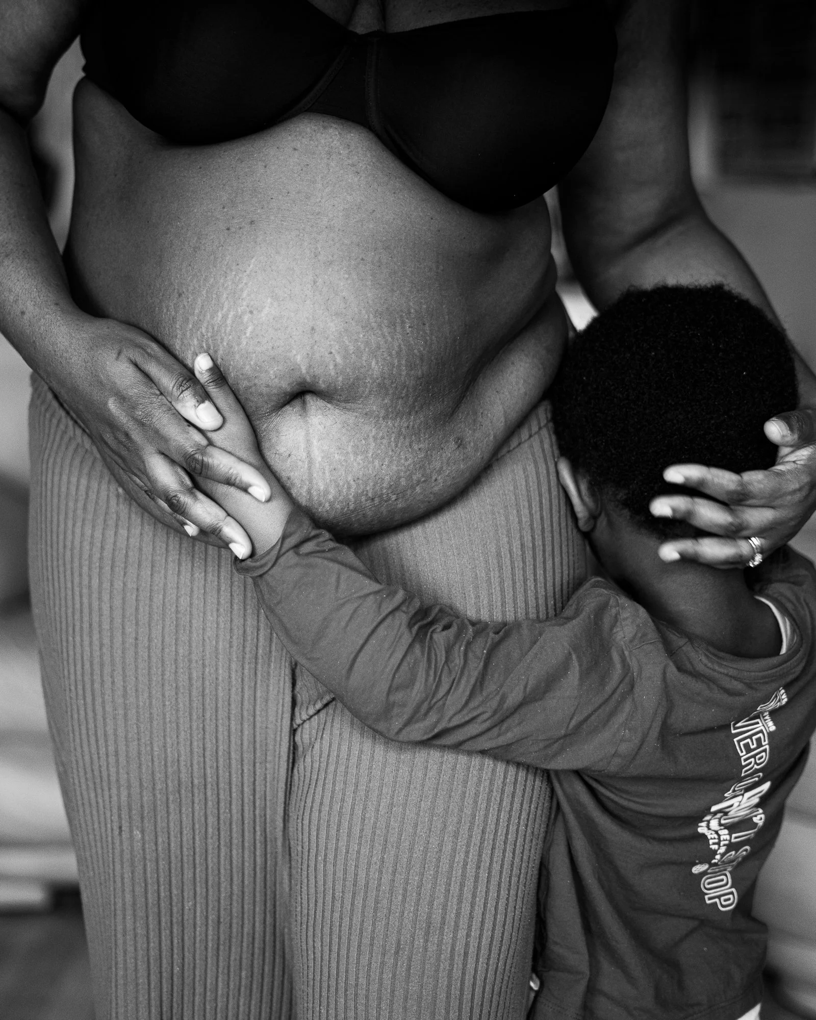 Offspring explores the physical and psychological changes that occur with the transition into motherhood from the perspective of Black mothers in the UK. The photographs of more visible physical changes like stretch marks, wrinkles, scars, or mementoes of early motherhood serve as a backdrop for visualising and discussing less obvious physiological changes and mental health issues that are taboo or tend to be swept under the carpet.